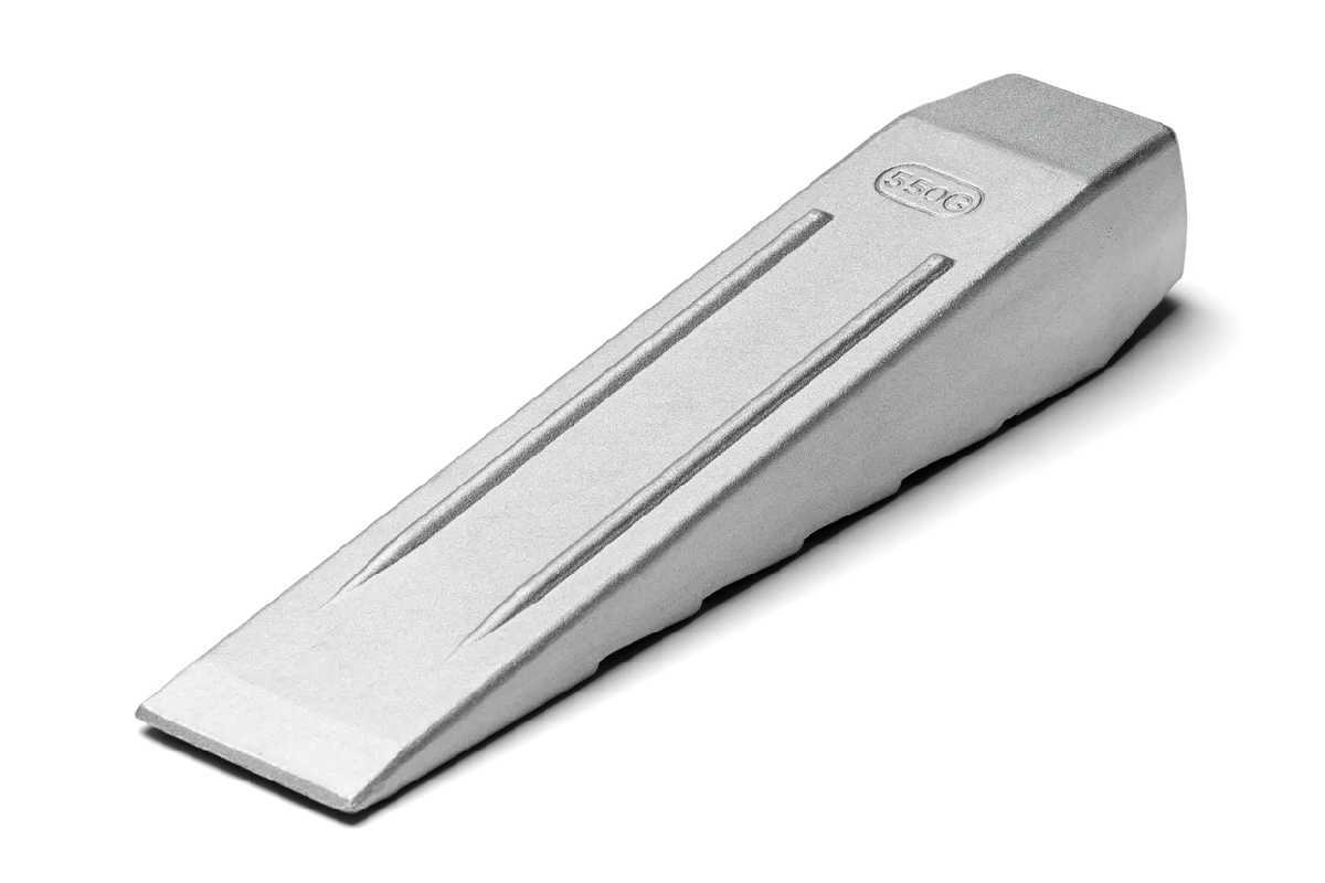 片側が鋸歯状で滑り落ちるのを防ぐ、研磨可能なアルミ製の伐倒・造材作業用くさび。
